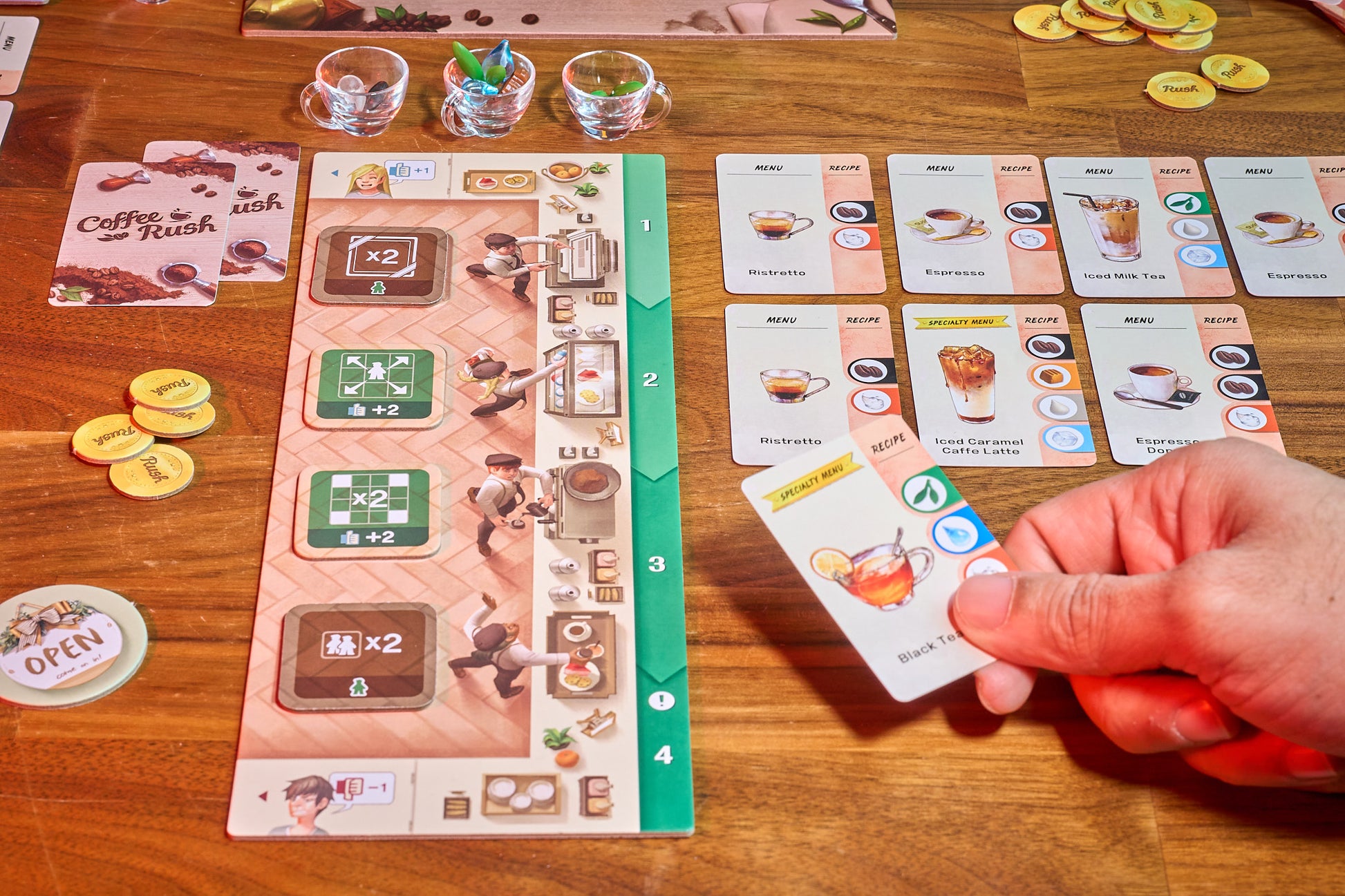 Coffee Rush is een ideaal gezelschapsspel voor spelers die houden van snelheid, strategie en een gezellige sfeer.