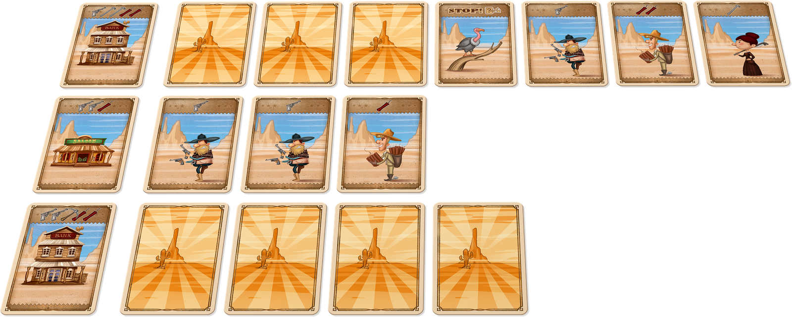 De speler die aan het eind van het spel de meeste dollars, geld buit, of roof overvallen verzamelt, wordt de meest gevreesde bandiet van de stad.