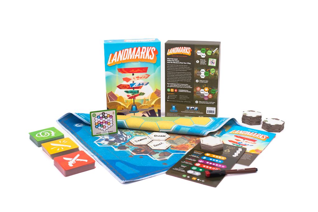 In Landmarks word je gids in een gevaarlijke jungle vol verraderlijke vallen, kwaadaardige vloeken en glinsterende, gouden schatten. Jij hebt de plattegrond, maar je groep is verdwaald. Gebruik één-woord hints om hen veilig door de jungle te leiden, gevaren te vermijden en rijkdom te ontdekken.