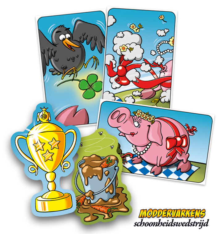 Schoonheidskoningin of moddervarken? Deze uitbreiding laat je kiezen hoe je wilt winnen: met prachtig aangeklede varkens, klaar voor een schoonheidswedstrijd of toch liever met varkens die lekker in de modder liggen te rollen. Geluksvogels zullen je een handje helpen naar de overwinning (of met het dwars zitten van je tegenstanders)!